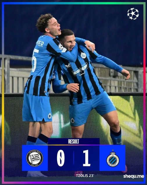 斯佐利斯23分钟世界波致胜,布鲁日两轮过后1胜1负。
